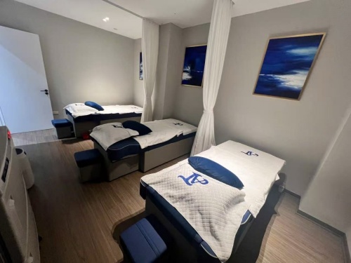 再也没有以前窄小生硬的多功能躺椅,换上了舒适的按摩床。